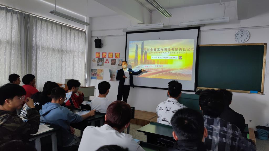 5月25日上午,澳门信誉最好十大平台在明尚楼C406教室开展了优质企业进校园宣讲招聘活动。本次宣讲会邀请了四川金鑫工程测绘有限责任公司进行现场宣讲招聘,20级地下与隧道技术专业和20级工程造价专业的同学参加了此次宣讲招聘会。