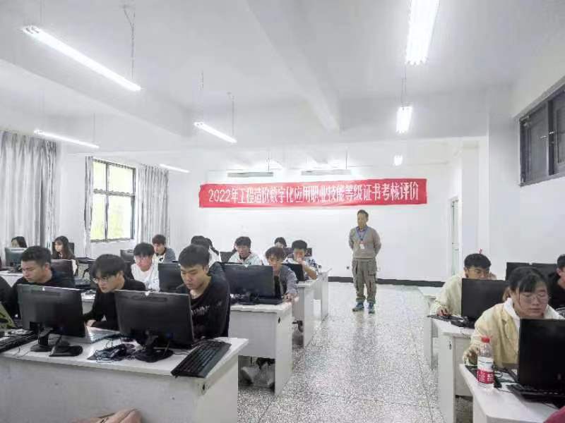 2022年10月23日上午9:00—12:00,全国“2022年1+X工程造价数字化应用职业能力等级(初级)考试”在我校明尚楼C503和C504教室举行,工程造价专业2020级76名学生参加了此次认证考试。澳门信誉最好十大平台副院长罗启钟、教师王绮滢、辅导员许丽娟、丁璨、杨轲在考评现场监考。