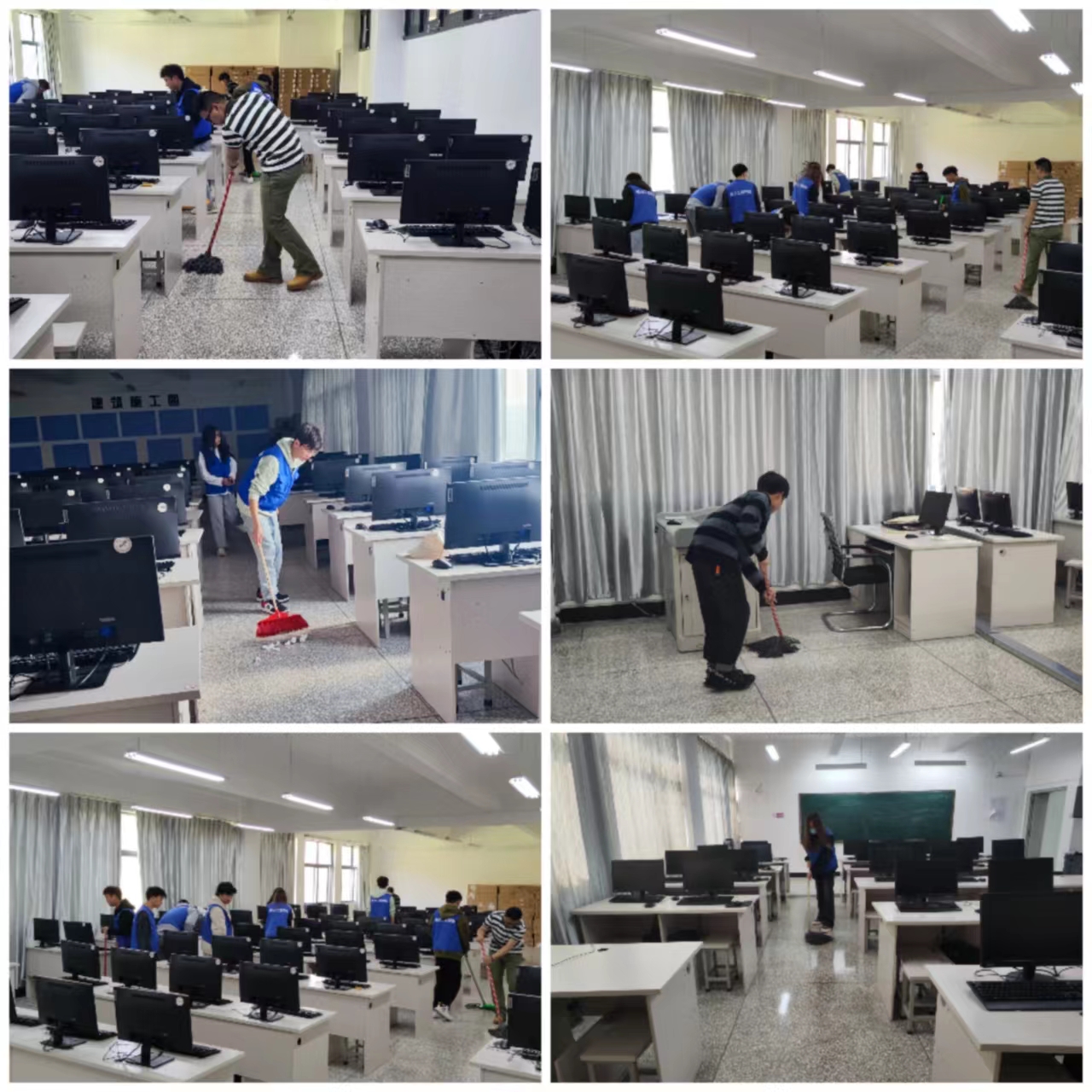 3月26日上午,为营造干净卫生、美丽舒适的校园环境。十大信誉组织20余名志愿者对明尚楼C区5楼电脑机房进行卫生大扫除。志愿者们用抹布、扫帚、拖把、垃圾袋等清洁工具,将明尚楼机房的垃圾,纸屑清理的干干净净,电脑、桌椅、地板等卫生死角擦拭的明亮清洁。