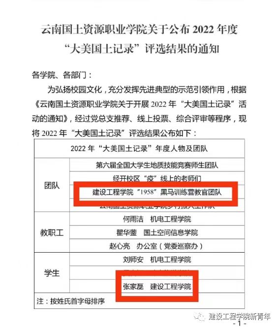 在学校组织开展的2022年“大美国土记录”评选活动中,经过党总支推荐、线上投票、综合评审等程序,十大信誉张家磊同学和“1958”黑马训练营教官团队成功入选2022年“大美国土记录”年度人物及团队。