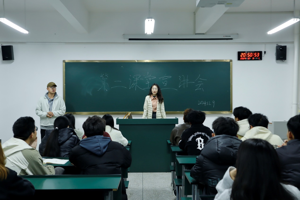 澳门信誉最好十大平台于2024 12 9 20:30在明尚楼C403召开了“第二课堂”积分培训宣讲会,旨在帮助学生深入了解第二课堂的重要意义与丰富内涵,鼓励学生积极参与综合素质拓展活动。学生党支部书记张宁、二课负责人张昊宇、学生会策划部以及各班级副班长参加了此次宣讲会。