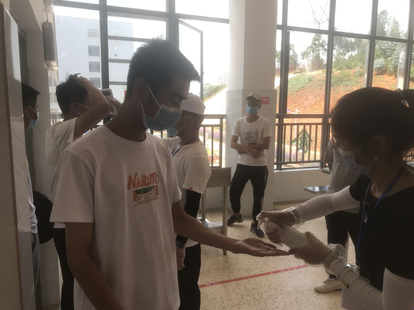为迎接返校的同学,建工学院的师生们早早做足了准备。志愿者用勤劳的双手把校园“翻新”,他们把校园的各个角落打扫干净,进行了全方位消毒,妥当安排了校园防疫部署的一切工作。从上到下、从里到外,一尘不染,干净整洁。这一切的辛劳,只为以一个干净、安全的校园环境,迎接同学们的归来。 为更好的服务返校同学,志愿者们在东西南北四大汽车高铁、火车客运站设置了接站点。学校为了确保同学们能安全顺利返校,安排了一系列严格和科学合理的返校流程。同学们到达接站点后,经过严格消毒后乘坐接站校车到校。校车到达学校西门,学生间隔一米经过“一测温一消毒三扫码”等环节即可进校。
