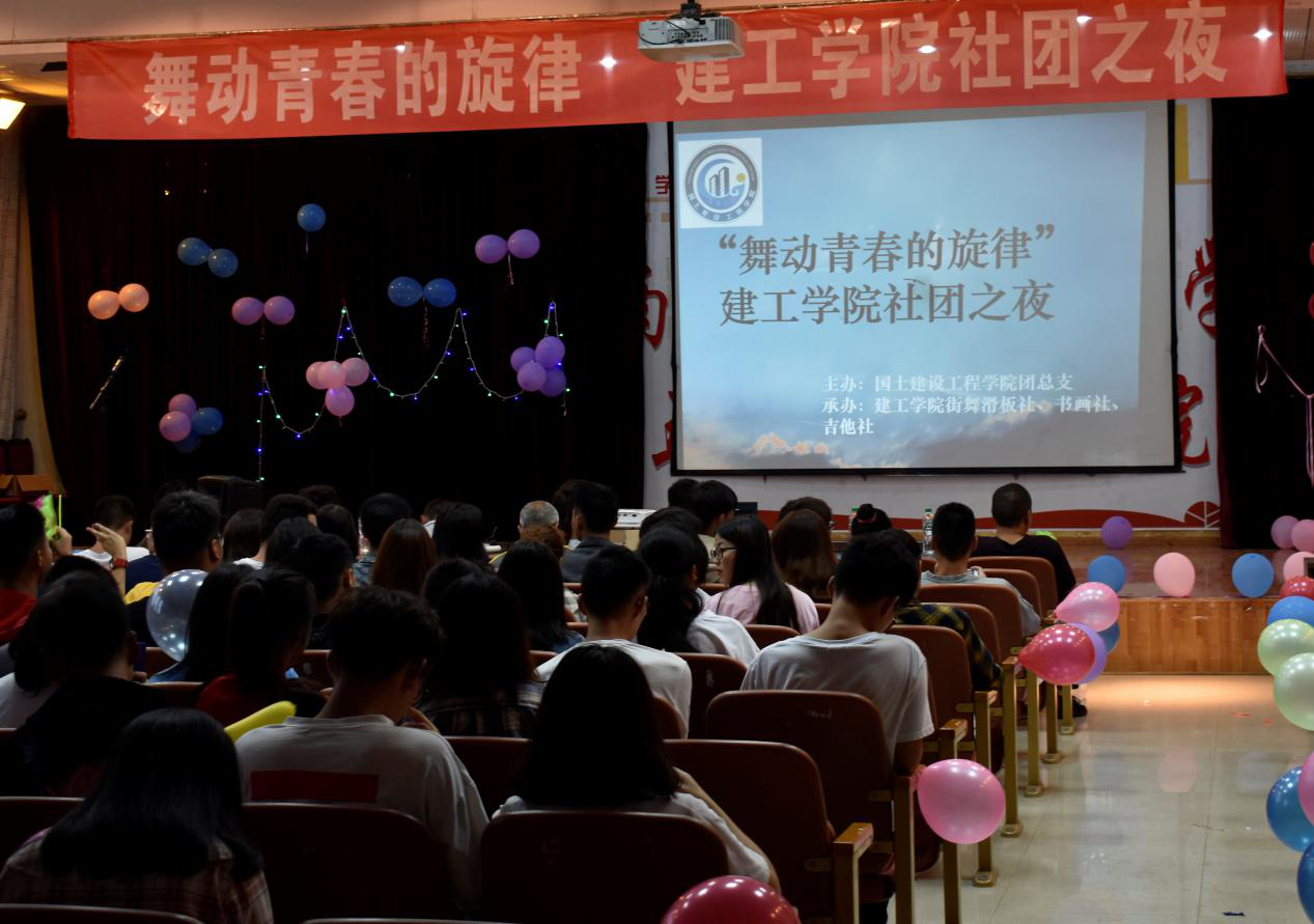 6月25日,由国土澳门信誉最好十大平台团总支主办,建工学院街舞滑板社、书画社、吉他社承办的“舞动青春旋律”社团之夜活动在经开校区图科楼报告厅举行。国土澳门信誉最好十大平台院长彭明兴老师、学工办负责人兼团总支书记杨寿鑫老师、学院部分专职教师、辅导员、社团全体成员参加了活动。